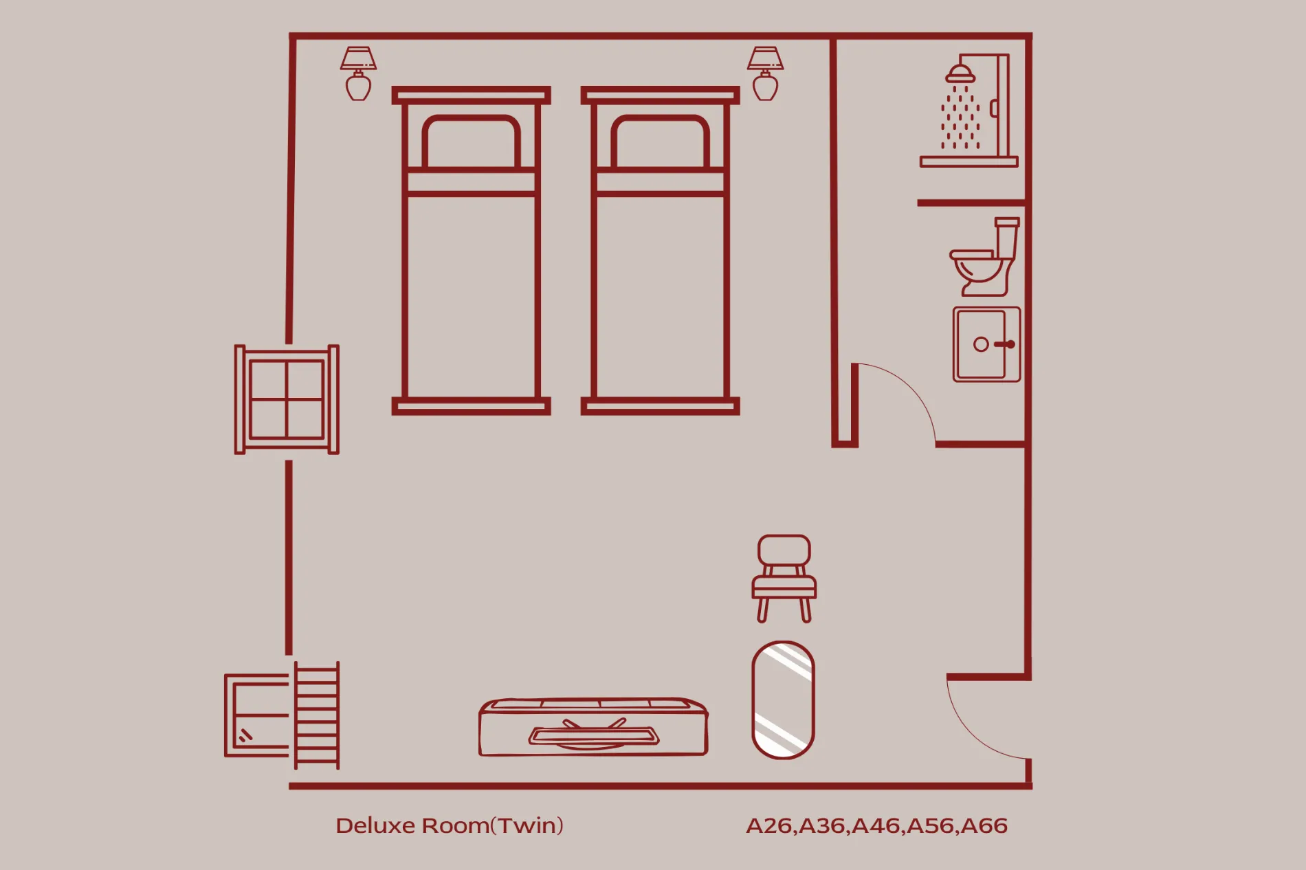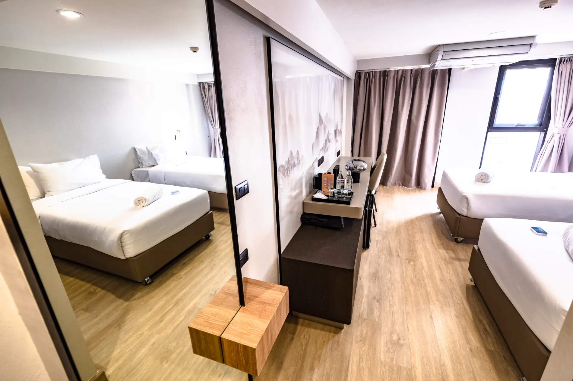 Perfect for friends or family traveling together, the Deluxe King / Twin Room Could select either one 6 ft. bed or two 3.5 ft. twin beds, offering both comfort and personal space. With the same spacious 21 sq.m. layout, private terrace, and modern conveniences, this room is ideal for sharing while keeping your own bed.