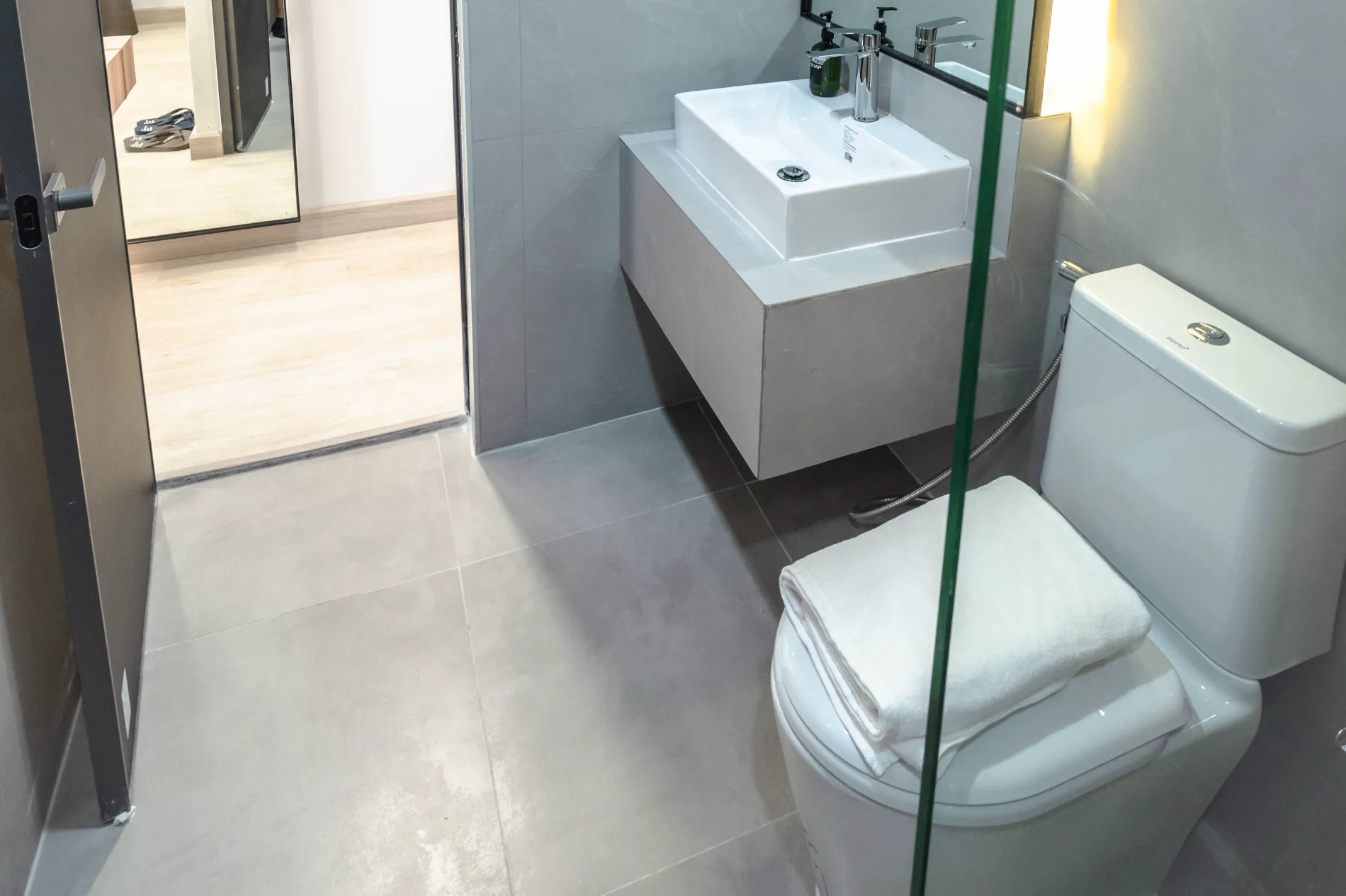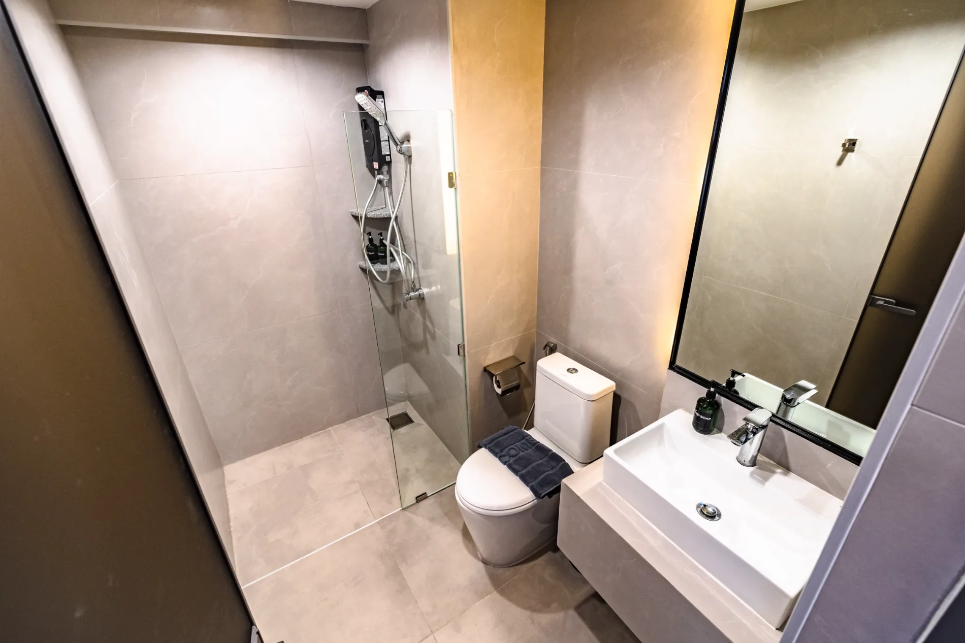 Amenities: Free toiletries (soap, shampoo, dental kit, cotton buds, shower cap), hand soap, and reusable slippers.