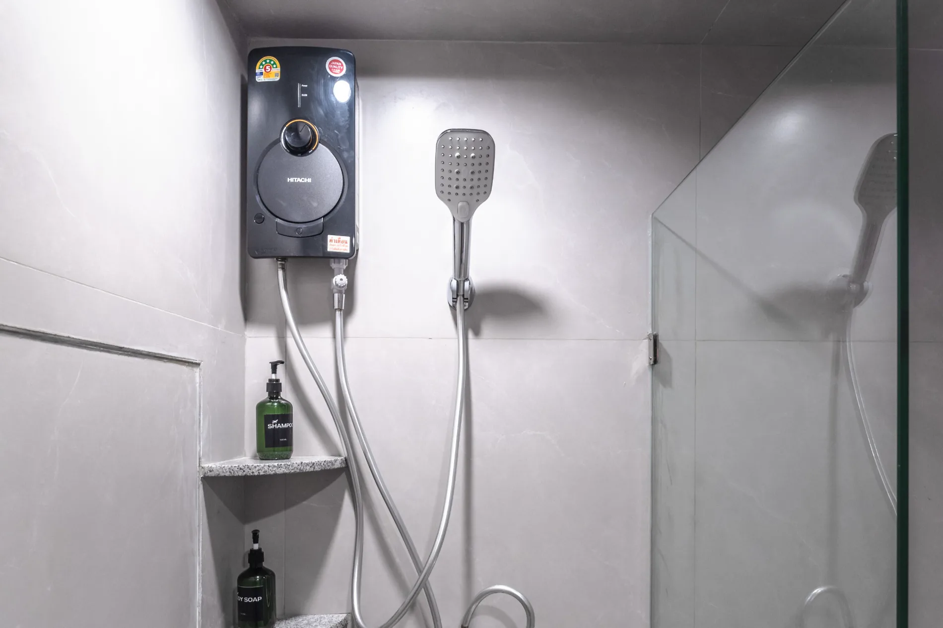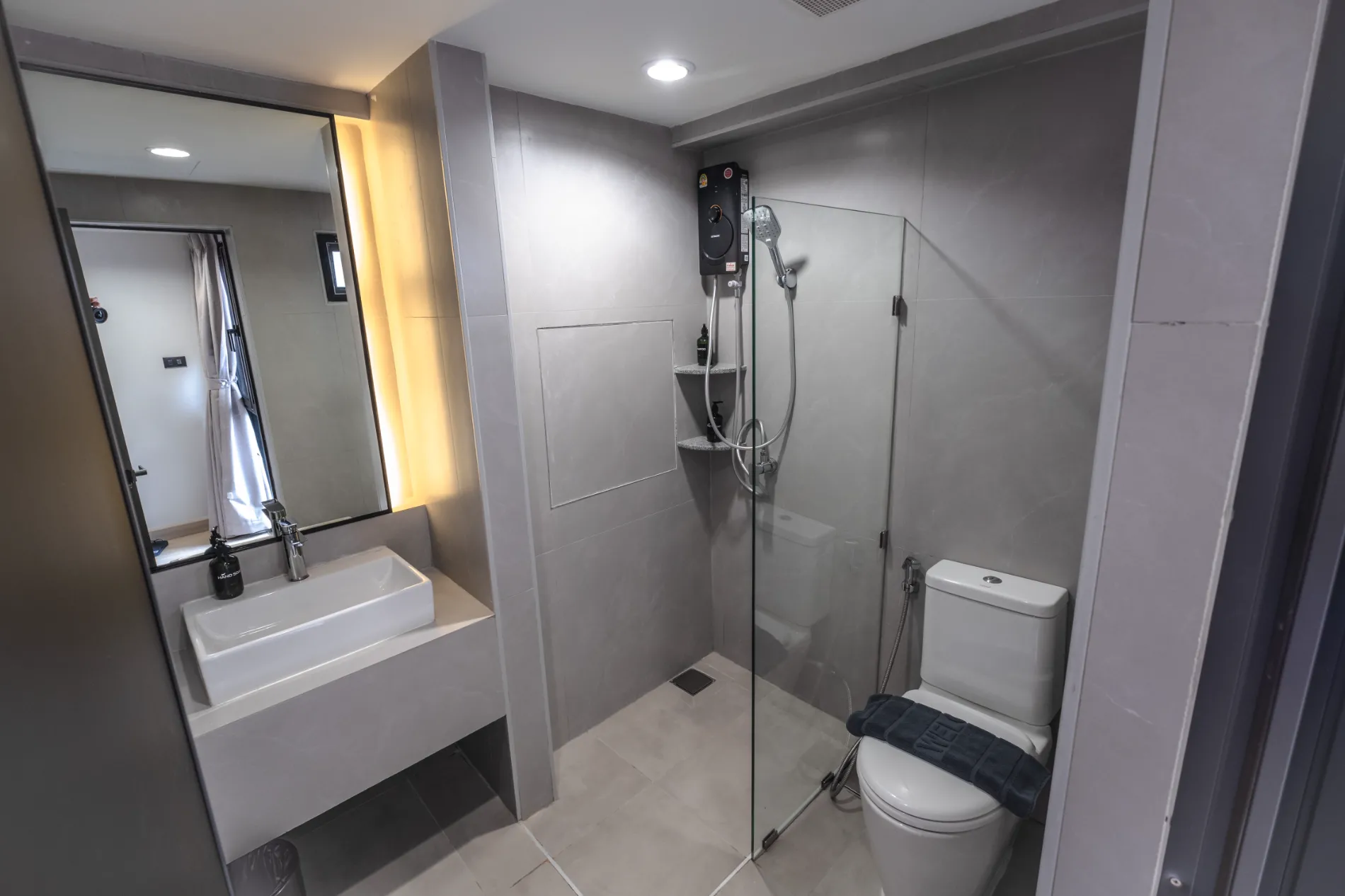 Amenities: Free toiletries (soap, shampoo, dental kit, cotton buds, shower cap), hand soap, and reusable slippers.